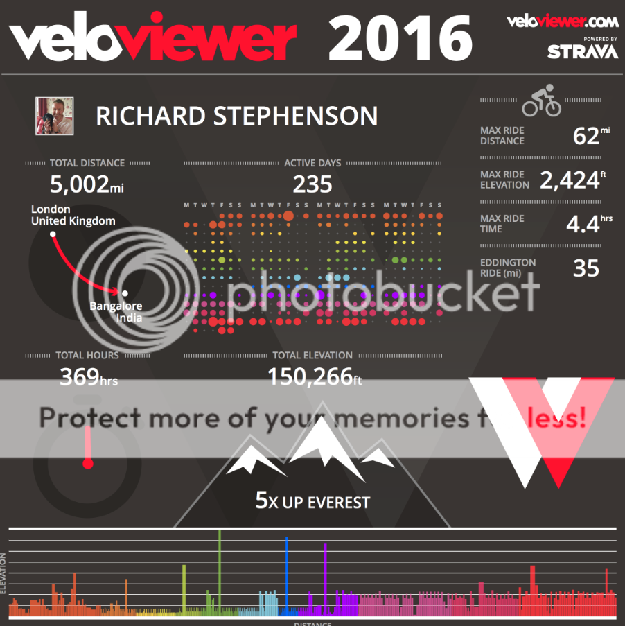 2016 - 1125.9 miles, 127 hours & 61 rides.