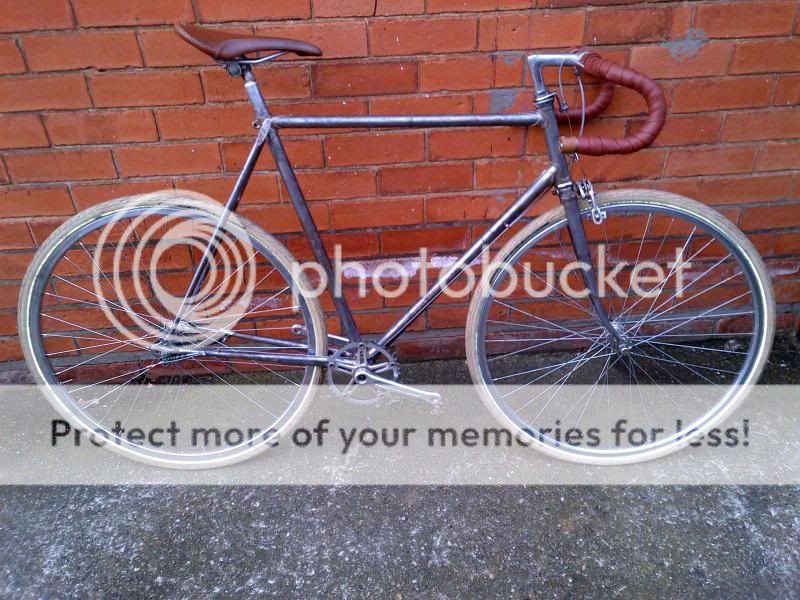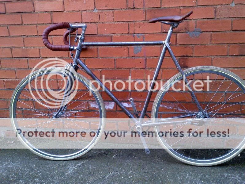 I liked the idea of the clean lines of an unbraked fixed gear bike, but with the practicality of stuff like brakes and gears. So after a bit of elbow grease, it looks like this (apologies to people who think things should kept original):