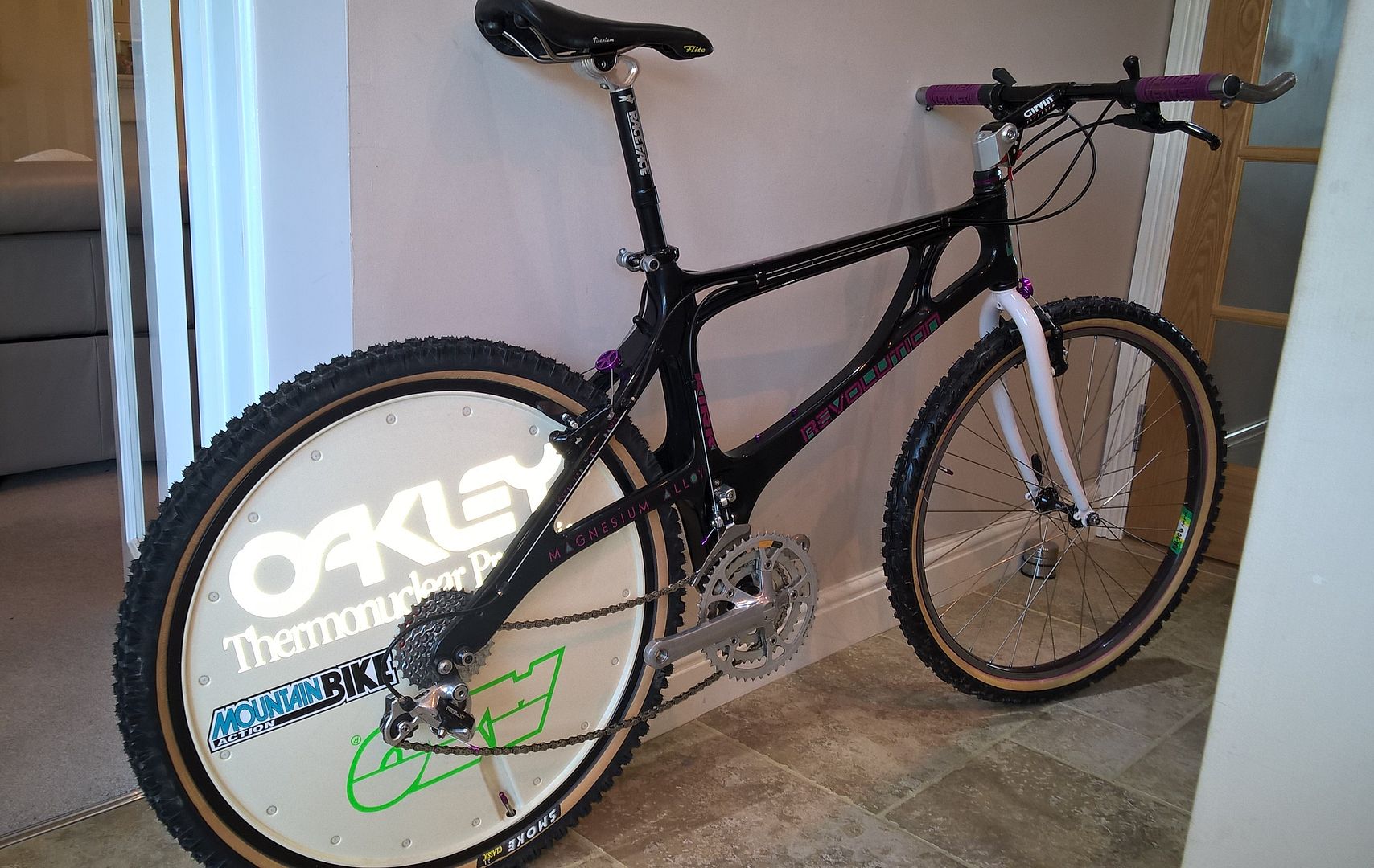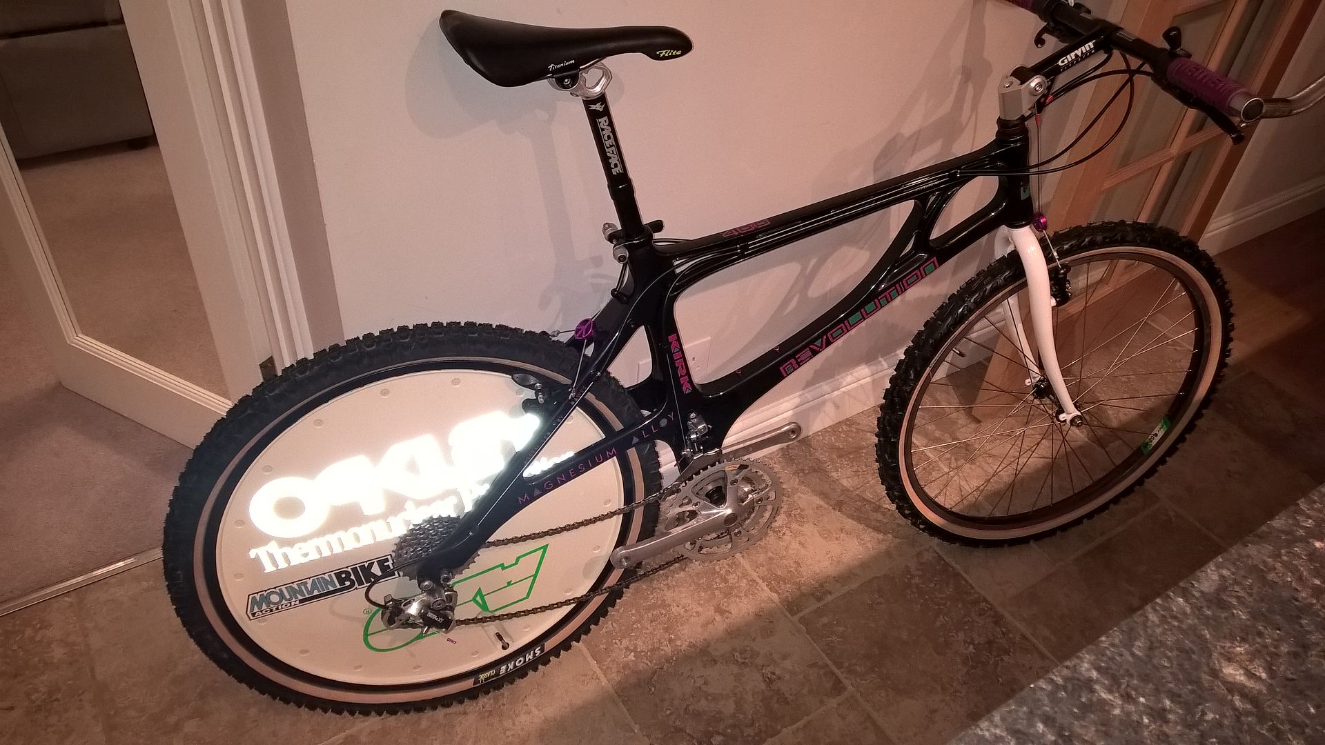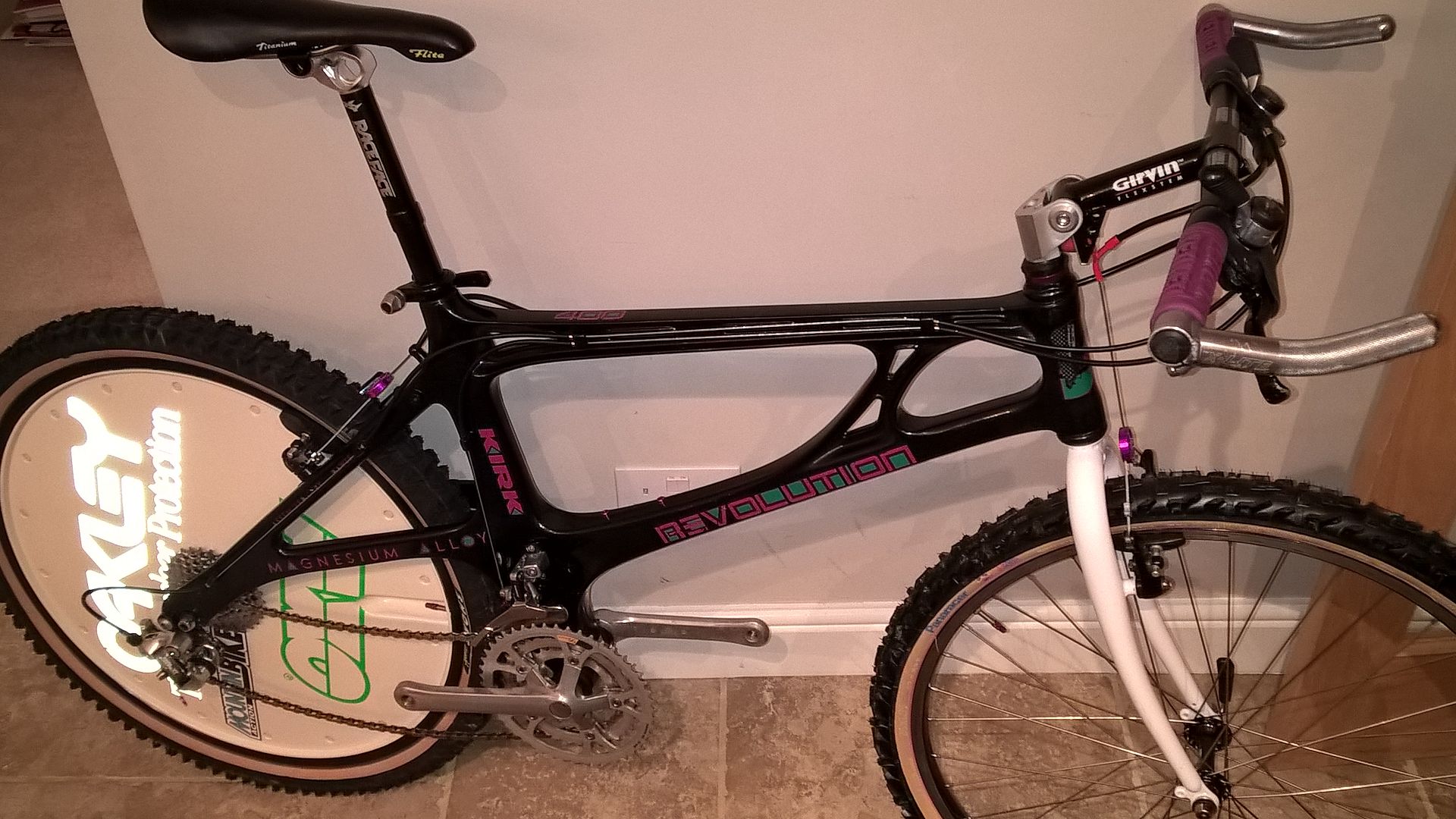 Next one out was the XT M732 rear wheel and the pseudo Disc (cover) I bought as it seemed like a good idea at the time but couldn’t find a permanent home for it as it just doesn’t work on other builds but with the white forks up front it’s balanced, and the highly reflective logo are cool as hell.