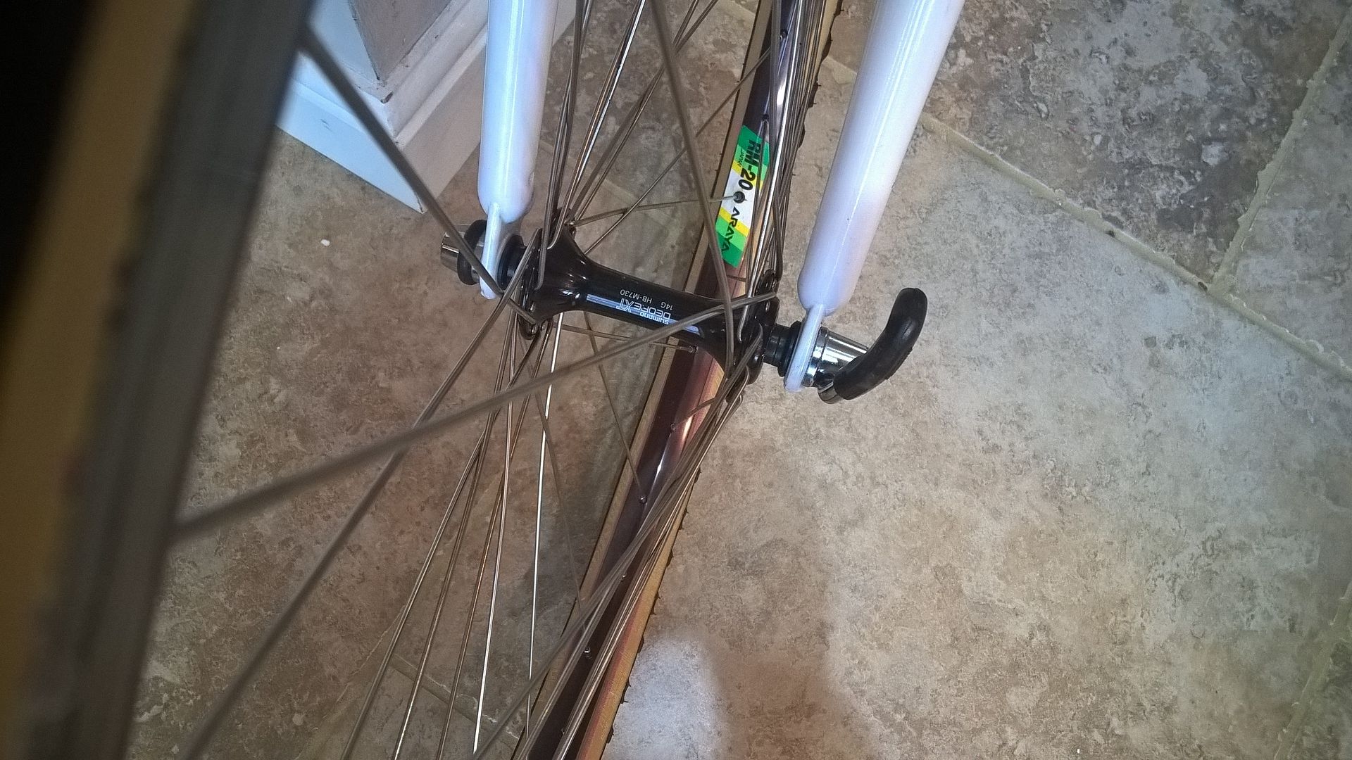 Apart from the tyres being budget black walled items and largely shagged, the smell from them was unbelievable so it never was in doubt that they would be going. Step forward a reproduction Smoke for the rear and since I really don’t like Darts nor a Smoke on the front I found this Panaracer for the front.