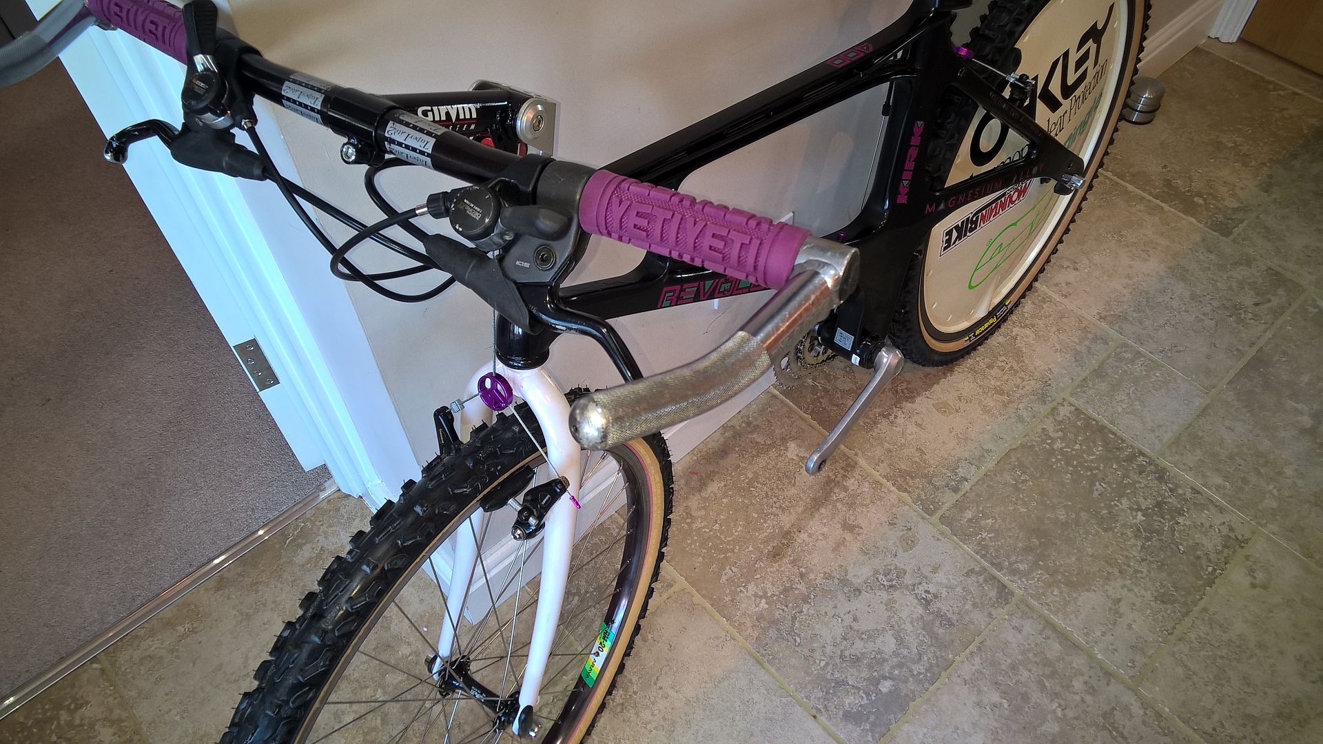 Up front its now sporting XT thumb shifters and M733 Levers along with a new set of Mike Muz’s all-time favourite grips on some nice black bars, after a strip and a clean of the thumbies I found a new top cap which makes at least one look like new,