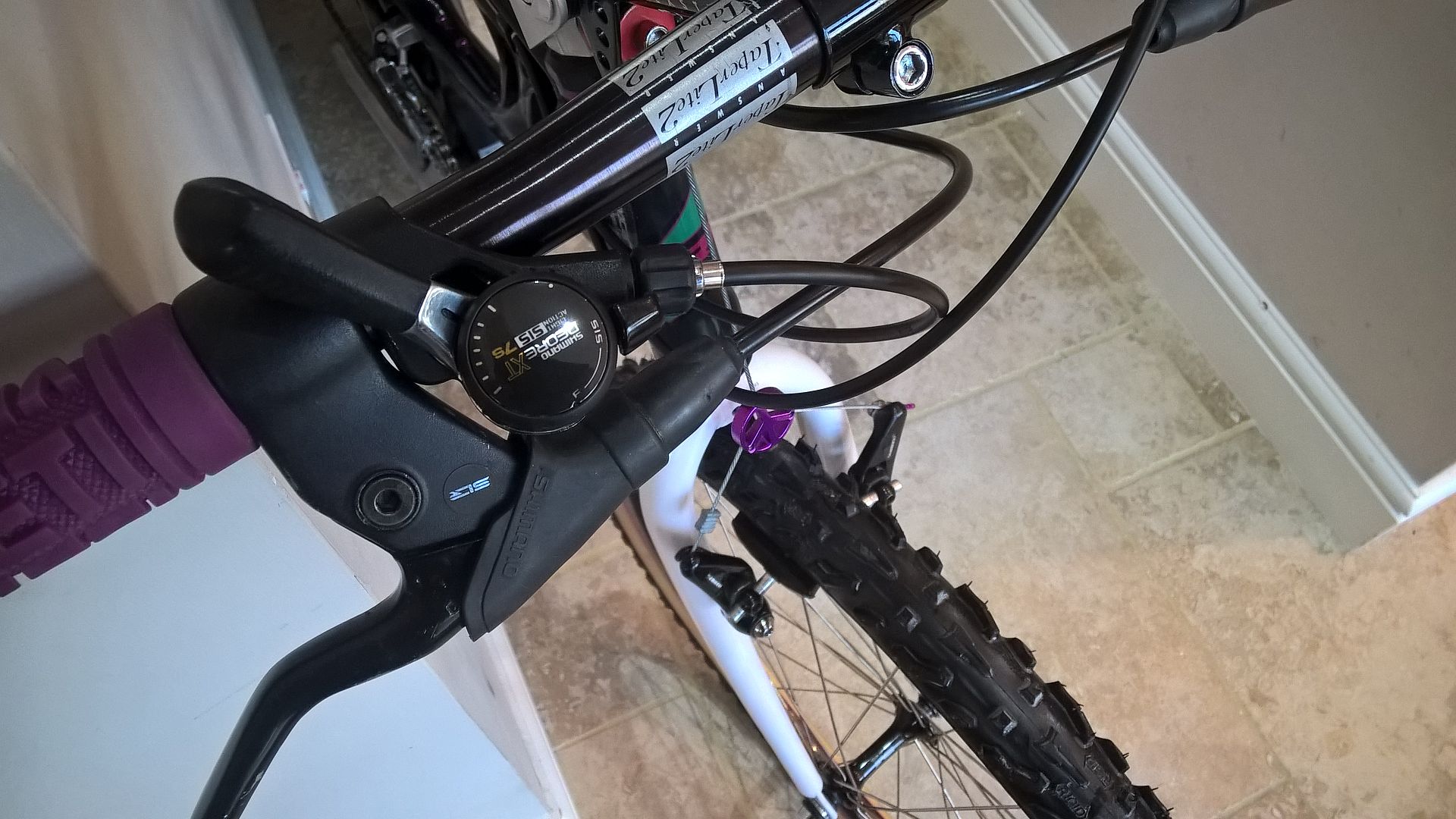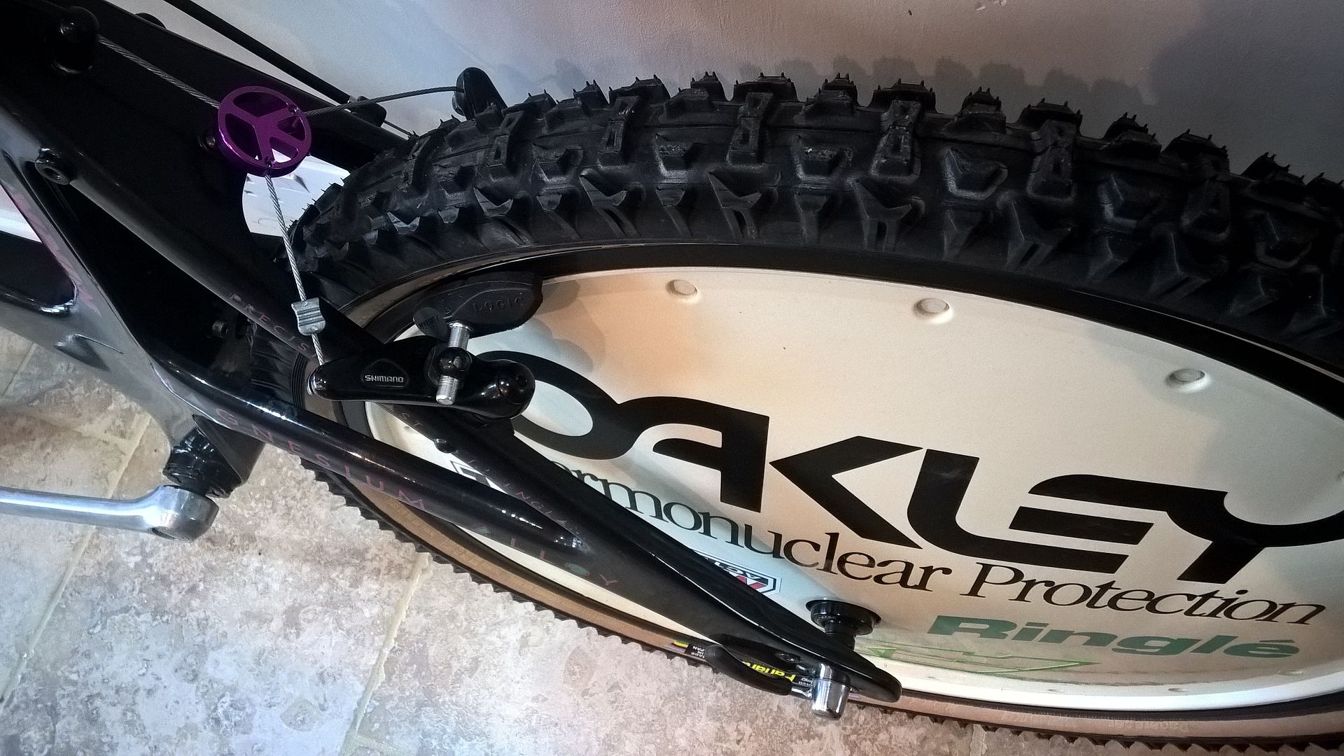 The XT theme continues with the brakes and topped off with a bit of Anno to pick up purple accent in the graphics and a subtle nod to the early 90’s, the brakes and lever combo gave me a good excuse to use some more 6mm SLR cable with 2mm inner for that industrial look, The old SLR stuff looks like rope when sat side by side with modern (cheese wire) brake cable.