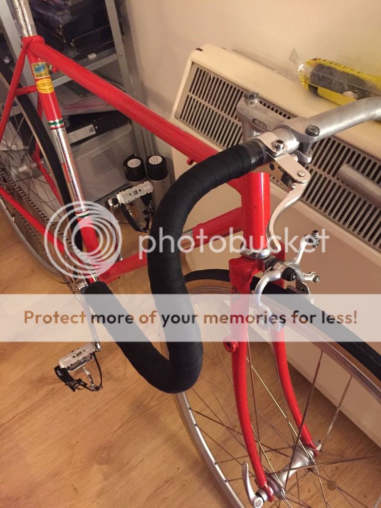 Then on to the bars. Again wanted to keep things pretty retro I went with some black cotton bar tape. It was my first time wrapping bars so took a couple of goes!
