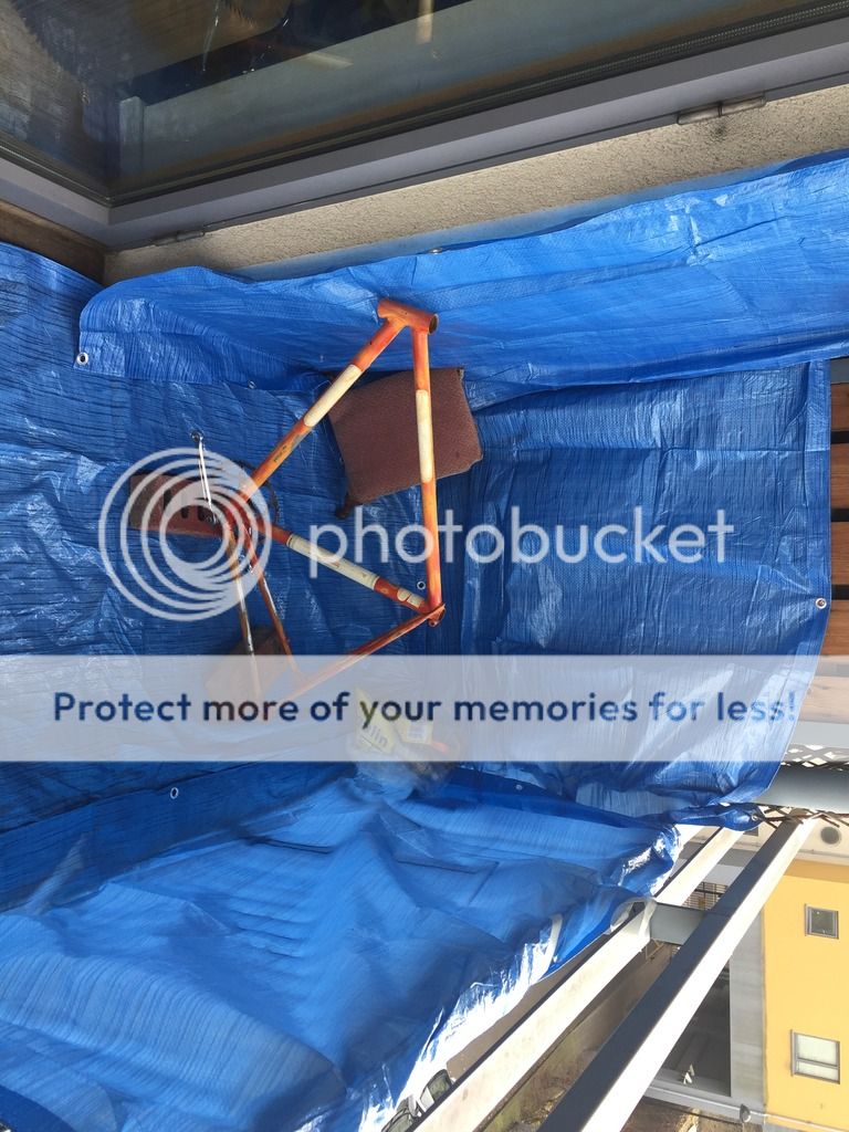 Started by stripping the frame down and getting rid of all the nasty bits. Made a spray booth on the balcony
