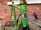 * Refinishing this frame was expensive. The paint is candy lime green and the decals are custom waterslides - not vinyl - giving the graphics the appearance of being painted in.