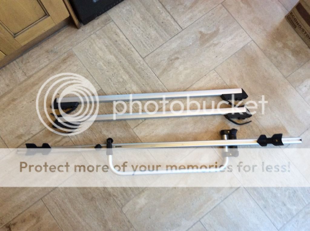 I'm pleased to be able to offer to the forum a pair of genuine Mercedes Zubehör locking alloy roof bars and 4 bike carriers / racks. Although from Mercedes they are designed to work with roof rails so they may still work with other makes.