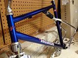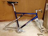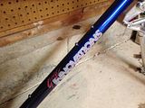 Grove Innovations full suspension frame with AMP swingarm. The frame is in excellent condition. The paint has two nicks on the headtube and a couple on the top tube that have been touched up, otherwise the paint is super glossy in top condition. Measurements: 19" C-C, 21" C-T, 22.5" top tube, 26.8 seatpost, 68mm BB shell. I'm including the minty Chris King headset in the sale. I recently polished the swingarm and it looks top notch. Asking $890 excluding shipping for the frame and headset, but I'm open to offers. Click on the thumbnails for bigger pictures.