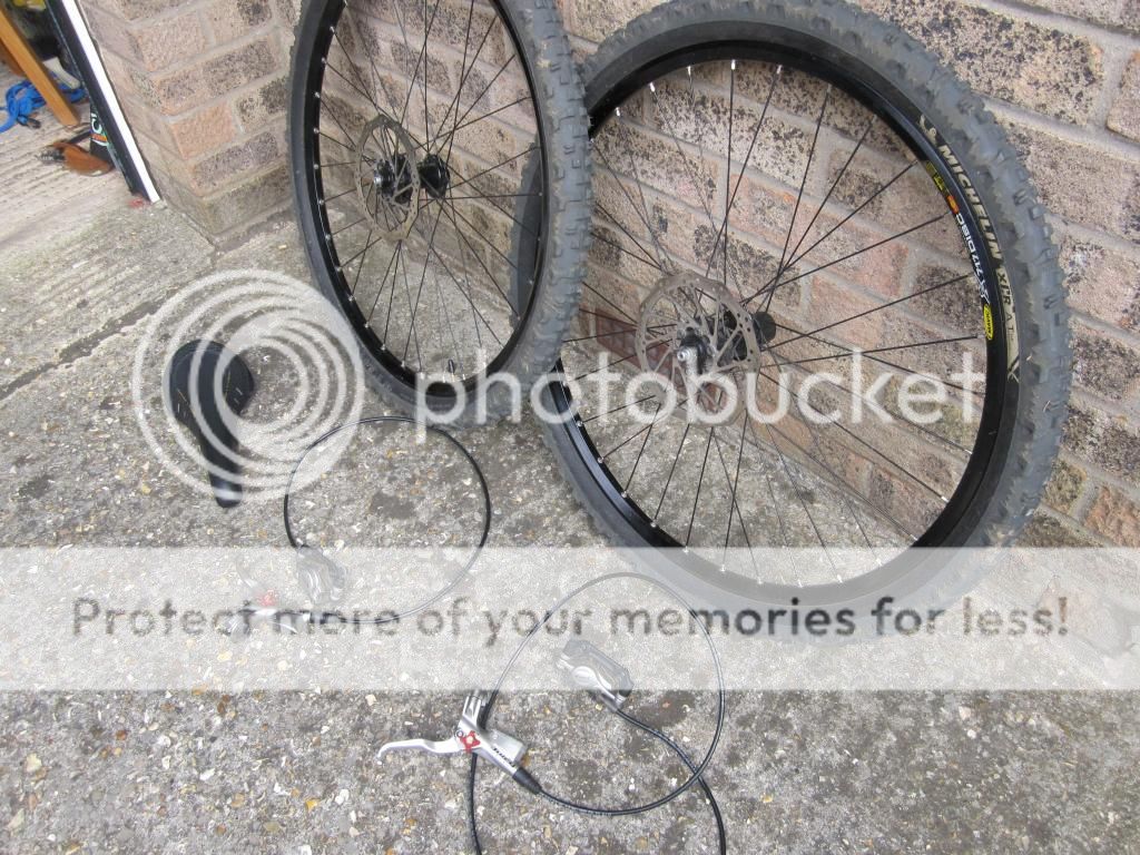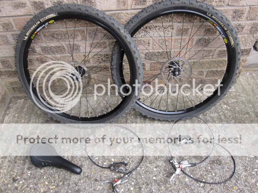 Hope Pro hubs laced to Mavic XC 717 rims. Michelin XCR All Terrain 2.0 tyres. Avid Juicey 7 front & rear disc brakes 160mm. Pads would need replacing pretty soon but, these are cheap to replace.