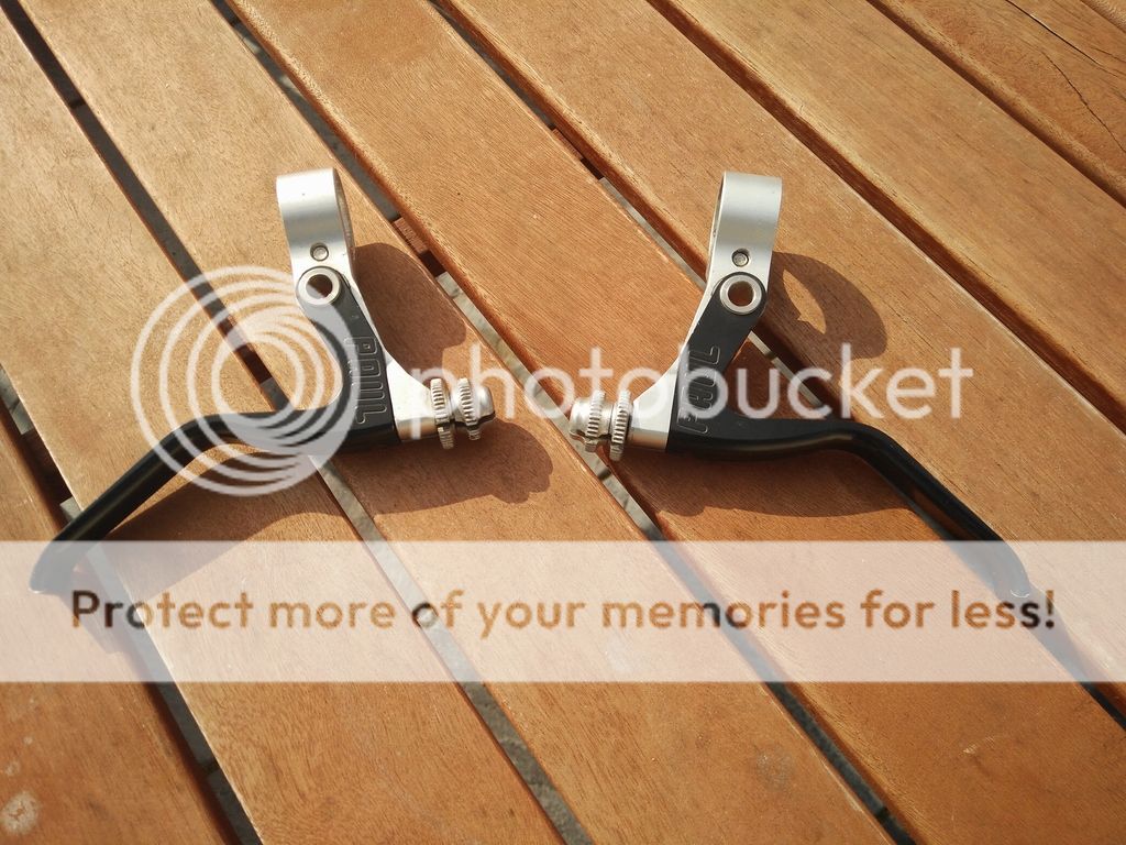 Pauls levers are in near perfect condition, as are the clamps and 9 speed Dura ace shifters. The shifter clamps are 26 but I ran them on a standard 25.4 mtb bar with some homemade shims (included).