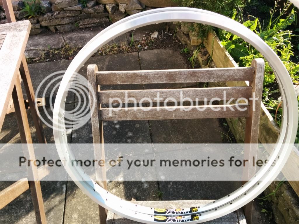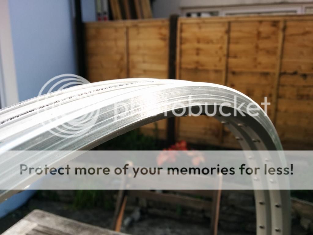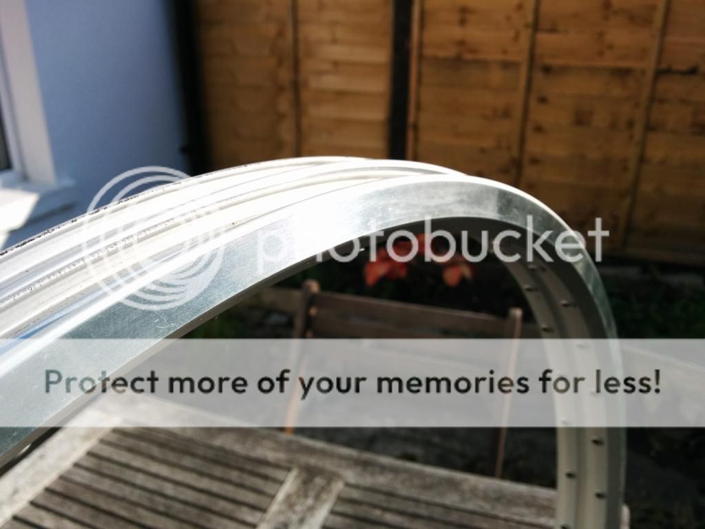 Front rim has never seen a brake in it's life and is in 10/10 condition. Rear rim has had a brake on it at some point, but is virtually unused and is in 9/10 condition.