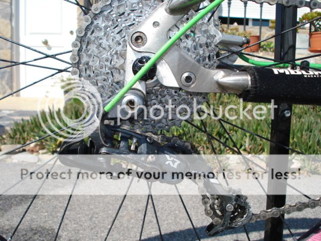 Hers is a 14" Ti built by Van Nickolas, in excellent condition with only a small mark on the RHS seat stay [pictured].