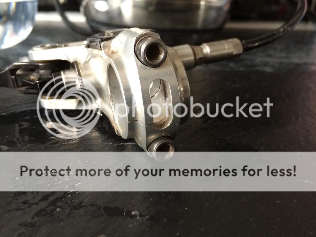 The rear brake lever has a broken clamp (see picture), but still tightens up just fine. A replacement clamp is available for about £12-13 from CRC/Wiggle etc., and can be fitted in a matter of seconds