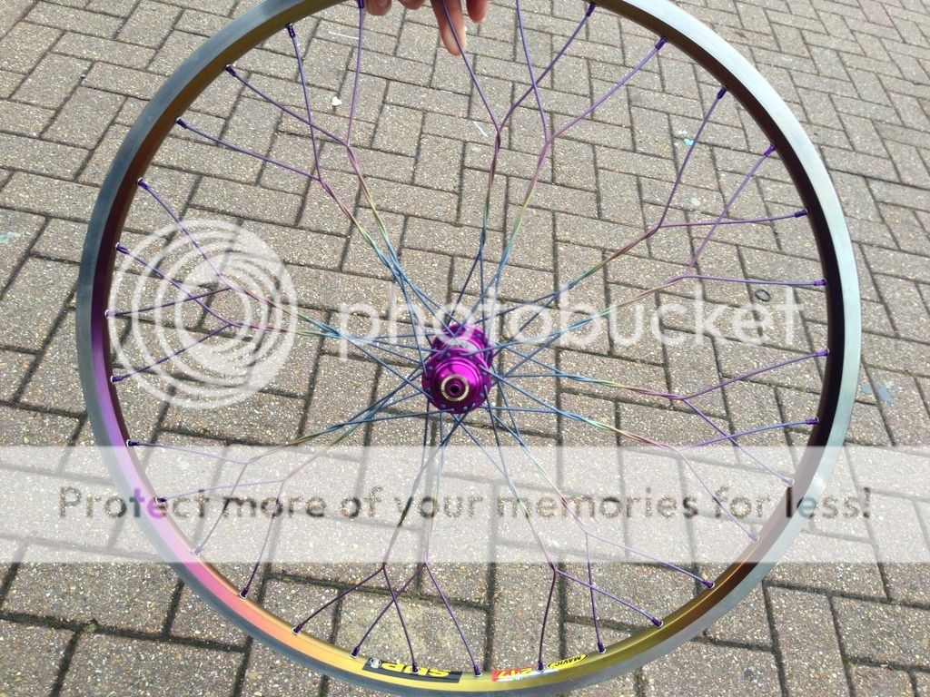 NOS rims + no stickers + built onto disk hubs = really cool looking wheels to match the Yo