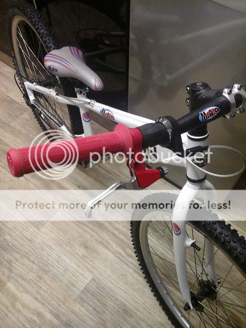It had a very clean set of magura hs33's on it which i sold and i put my xt v's on it with new cables and my old v brake levers that i painted at work. New grips and new pedals to finish it off.
