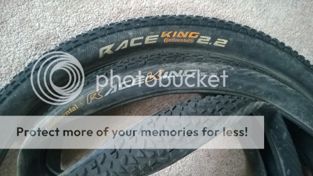 A pair of Continental Race Kings, one folding one none folding, both are 26" x 2.2" and have loads of life left in them - £20 posted in the UK