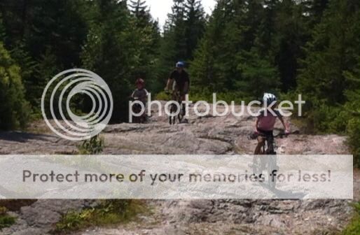 Here's a fatter, older me this summer, out with my wife and kids, teaching them the ways of slickrock, near Millican Lake, NB.