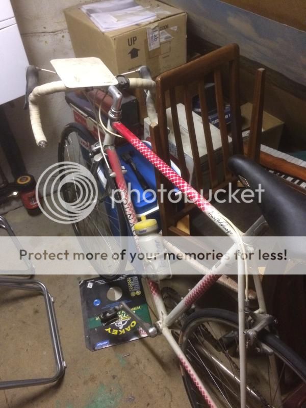 Been working at a customers this week building an en suite, and whilst running some pipe work and cables in one of the loft spaces I stumbled across this old colnago gathering dust. Chatted to the owner briefly who says its for sale but cant remember what model it is. He bought it new from a shop called "Whiskers" in Goffs Oak. It looks pretty mint, 9/10 I'd say. Not sure on the age either as originally it did have down tube shifters which he said he replaced with integrated shift/brake levers. All shimano 600 tricolor. Made from Columbus sl tubing. I'll try to find out more info next week but in the meantime I have a wealth of knowledge in all you guys.