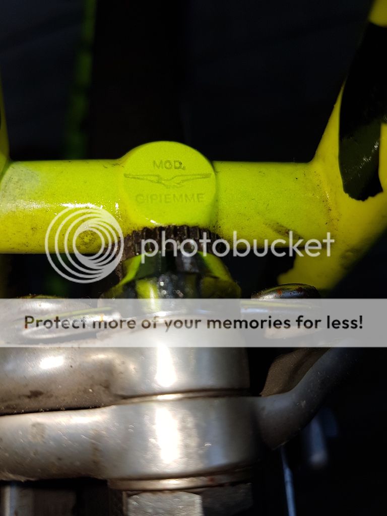 There is no frame numbers or markings whatsoever on the frame, except for a Gipemme label on the brake bridge. I cant find any markings on the dropouts or the fork ends. The fork seems to be a Columbus Air type, The seat stays are also aero shaped. A special feature is the seat pinching bolt witch goes through the seat stays and is treadled into the frame.